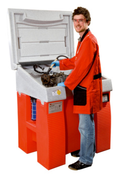 เมื่อเติมเป็นครั้งแรก (4x25 ลิตร) สำหรับทำการเปลี่ยนและควบคุมระดับการเติมของอุปกรณ์ล้างชิ้นส่วน Art. No. 0995 000 000